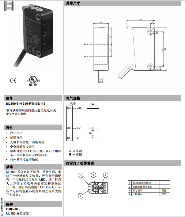 ML100-8-H-350-RT/103/115,漫反射型傳感器