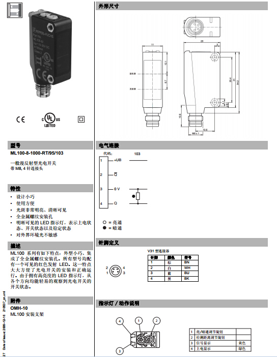 ML100-8-1000-RT/103/115,漫反射型傳感器