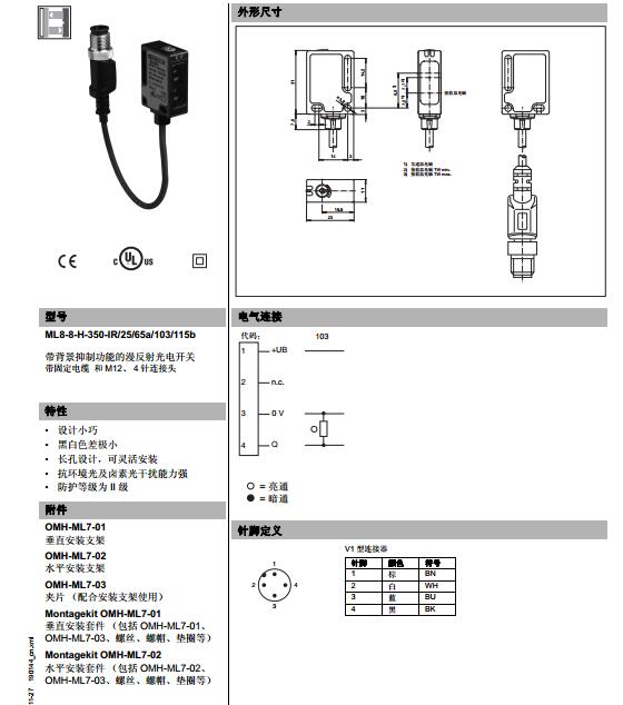 ML8-8-H-350-IR/25/65a/103/115b,漫反射型傳感器