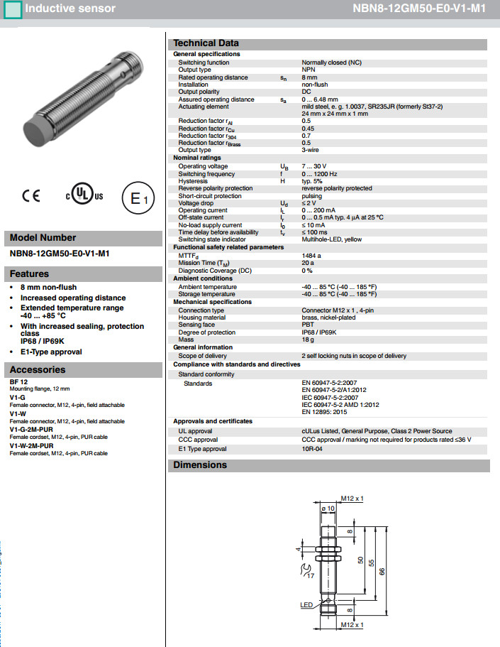 NBN8-12GM50-E0-V1-M1(常閉),NBN8-12GM50-E0-V1-M1