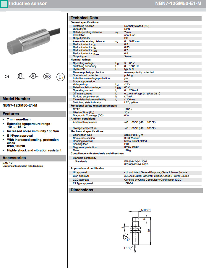 NBN7-12GM50-E1-M,NBN7-12GM50-E2-M,NBN7-12GM50-E3-M
