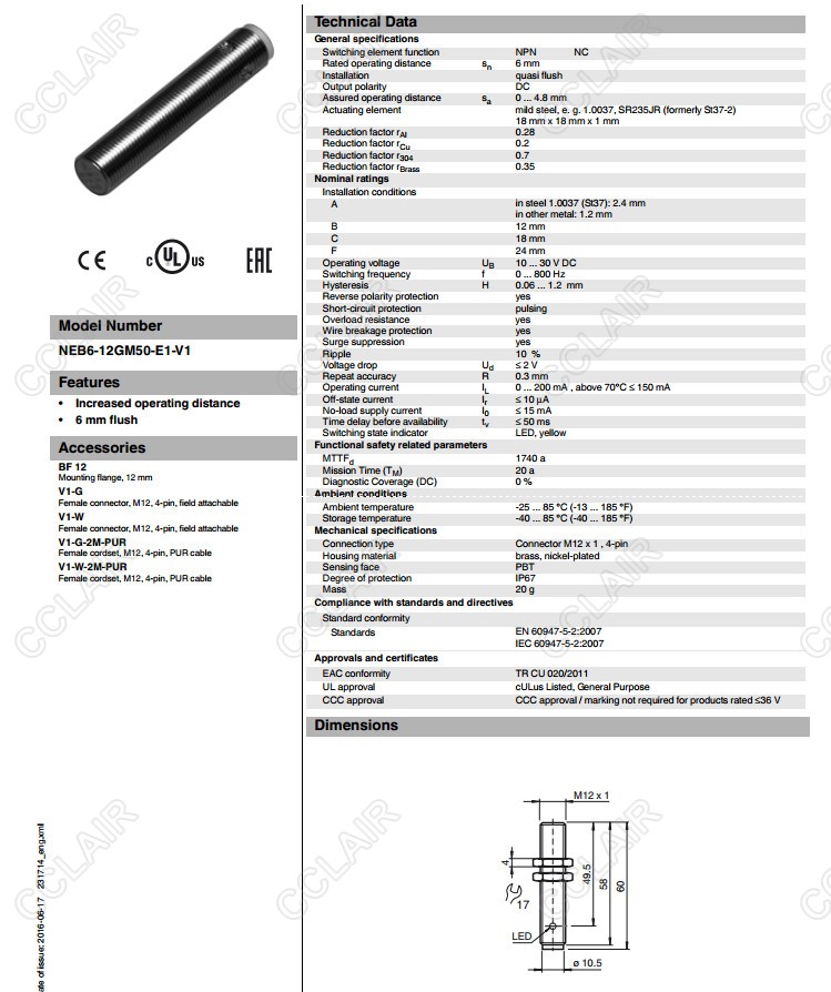 NEB6-12GM50-E1-V1,電感式接近開(kāi)關(guān)