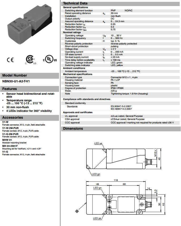NBN30-U1-A2-T-V1電感式接近開關(guān)