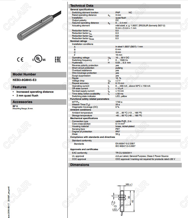 NEB3-8GM45-E3,電感式接近開(kāi)關(guān)
