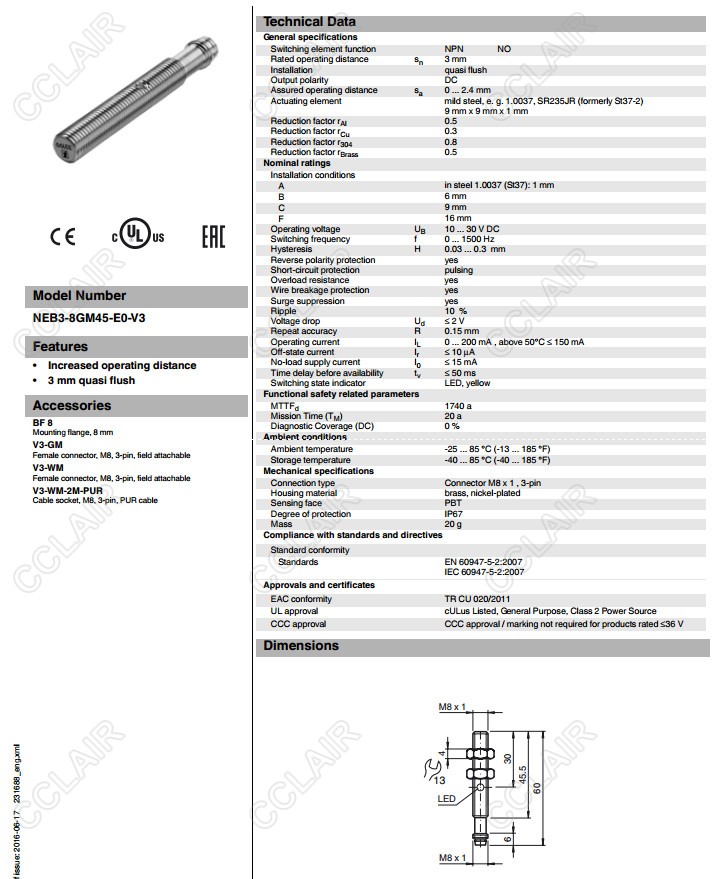 NEB3-8GM45-E0-V3,電感式接近開關(guān)