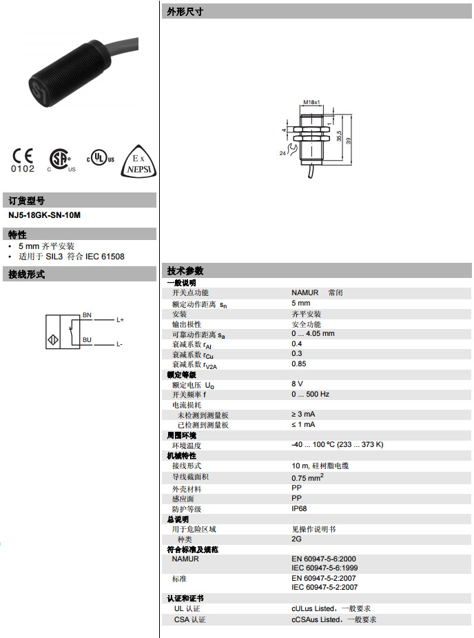 NJ5-18GK-SN-10M電感式接近開(kāi)關(guān)