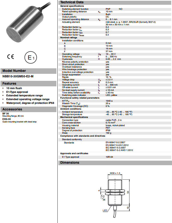 NBB10-30GM50-E2-M電感式接近開關(guān)