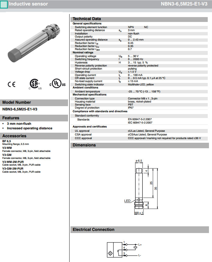NBN3-6,5M25-E1-V3感應(yīng)式傳感器