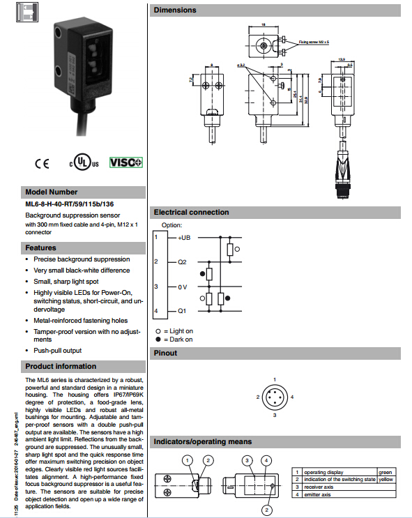 ML6-8-H-40-RT/59/115b/136,漫反射型傳感器