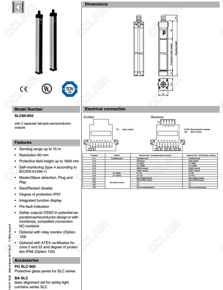 SLC60-600-S,SLC60-600/31,SLC60-900,SLC60-900/31,SLC90-1200,安全光柵