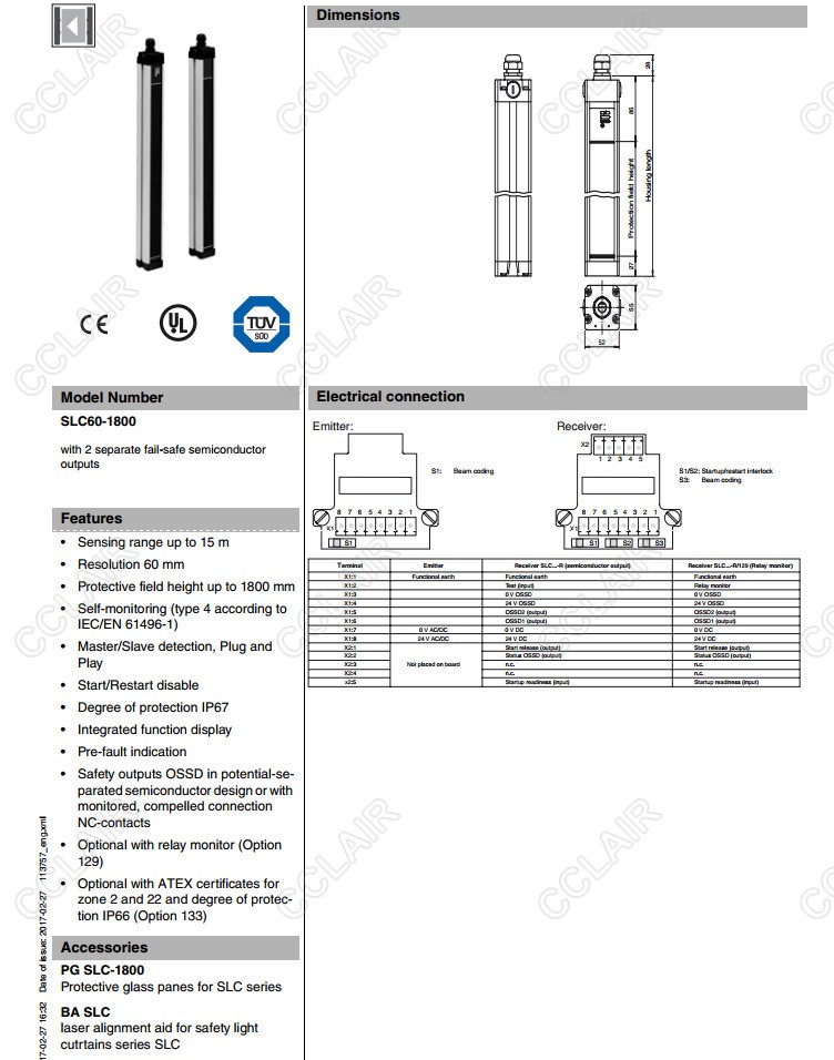 SLC60-1500,SLC60-1500-S,SLC60-1500/31,SLC60-1800,SLC60-1800-S,安全光柵