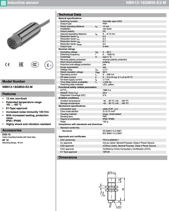 NBN12-18GM50-E2-M,NBN12-18GM50-E2-M1,NBN12-18GM50-E2-M-Y285611