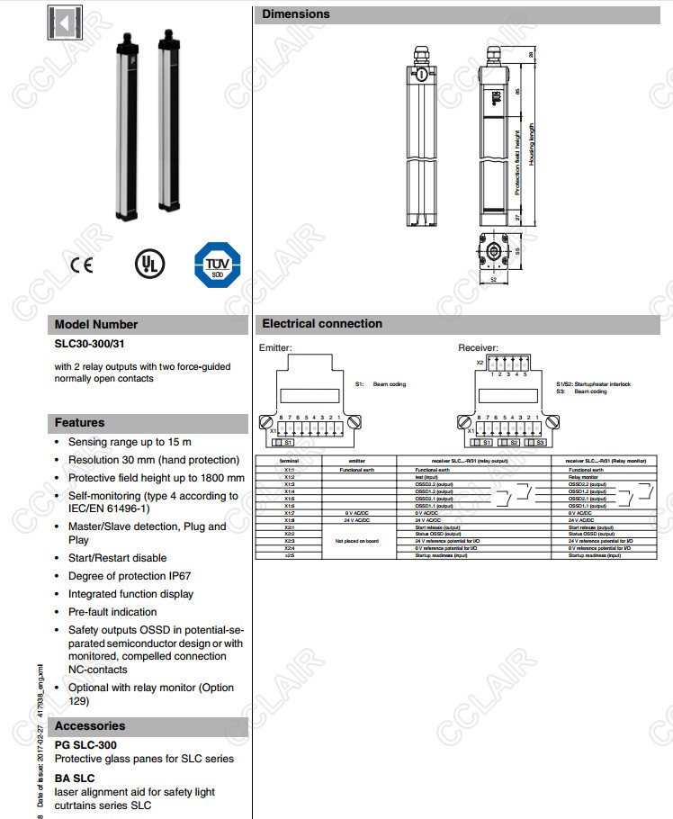 SLC30-300/31,SLC30-450,SLC30-450-S,SLC30-450/31,SLC30-600,安全光柵