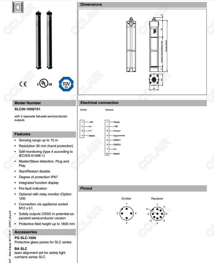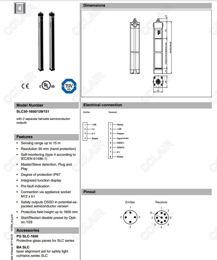 SLC30-150/151,SLC30-1500/129/151,SLC30-1500/151,SLC30-1650/129/151,安全光柵
