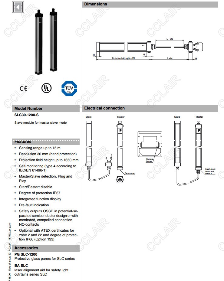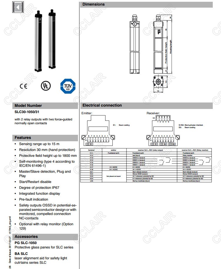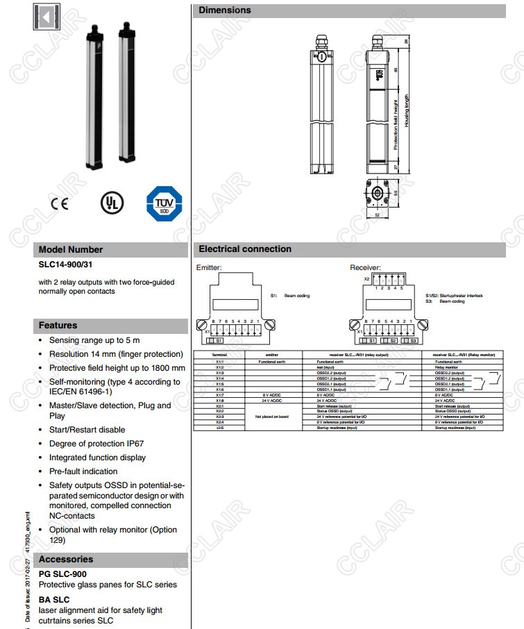 SLC14-900/31,SLC30-1050,SLC30-1050-S,SLC30-1050/31,SLC30-1200,SLC30-1200-S,安全光柵