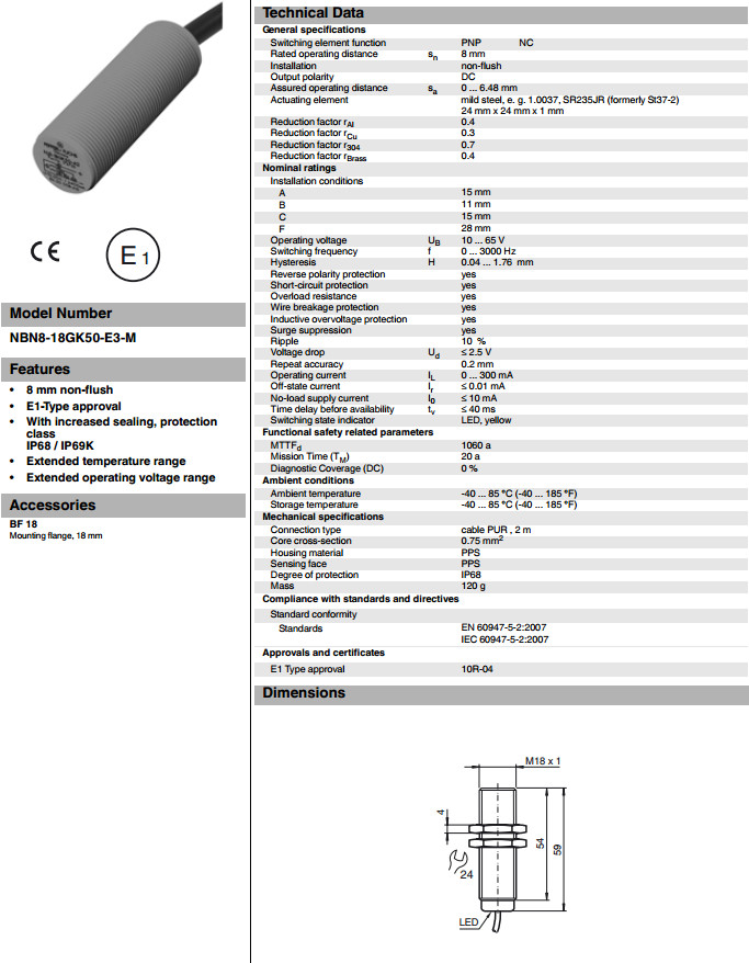 NBN8-18GK50-E3-M電感式接近開關(guān)