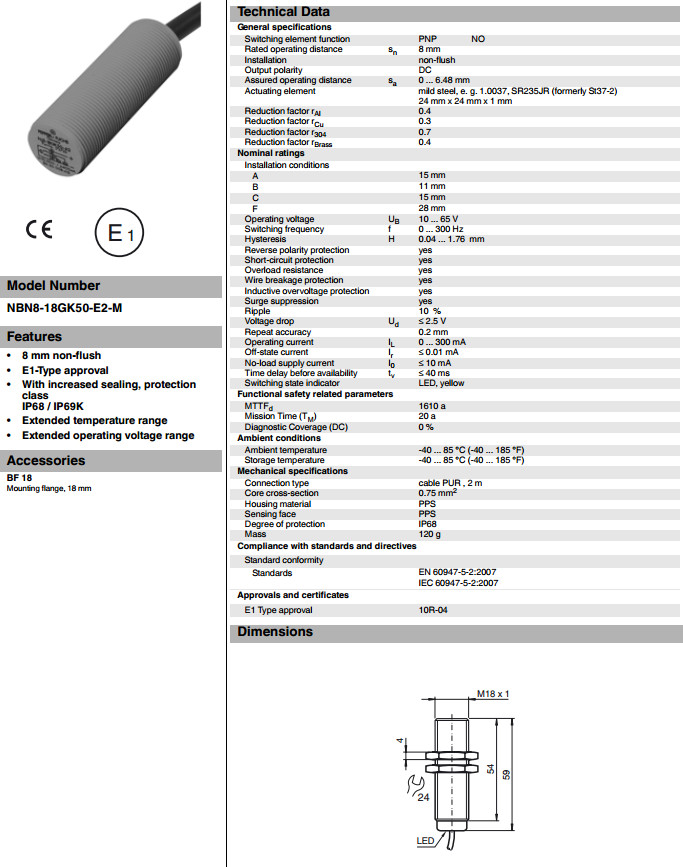 NBN8-18GK50-E2-M電感式接近開(kāi)關(guān)