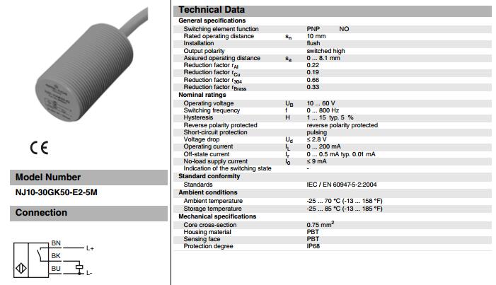 NJ10-30GK50-E2-5M電感式接近開關(guān)