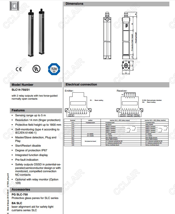 SLC14-600/31,SLC14-750,SLC14-750/31,SLC14-900,安全光柵
