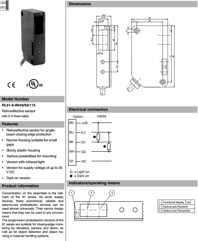 RL91-6-IR/49/59/115電梯傳感器