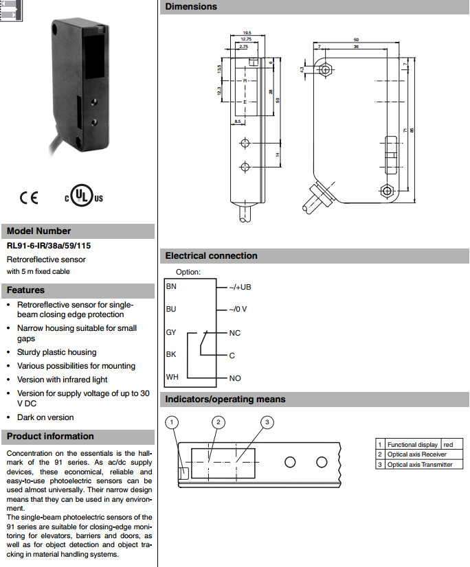 RL91-6-IR/38a/59/115電梯傳感器