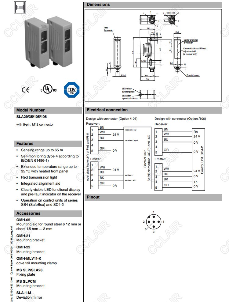 SLA29/105/106,SLA29/35/105/106,對射型安全光電傳感器