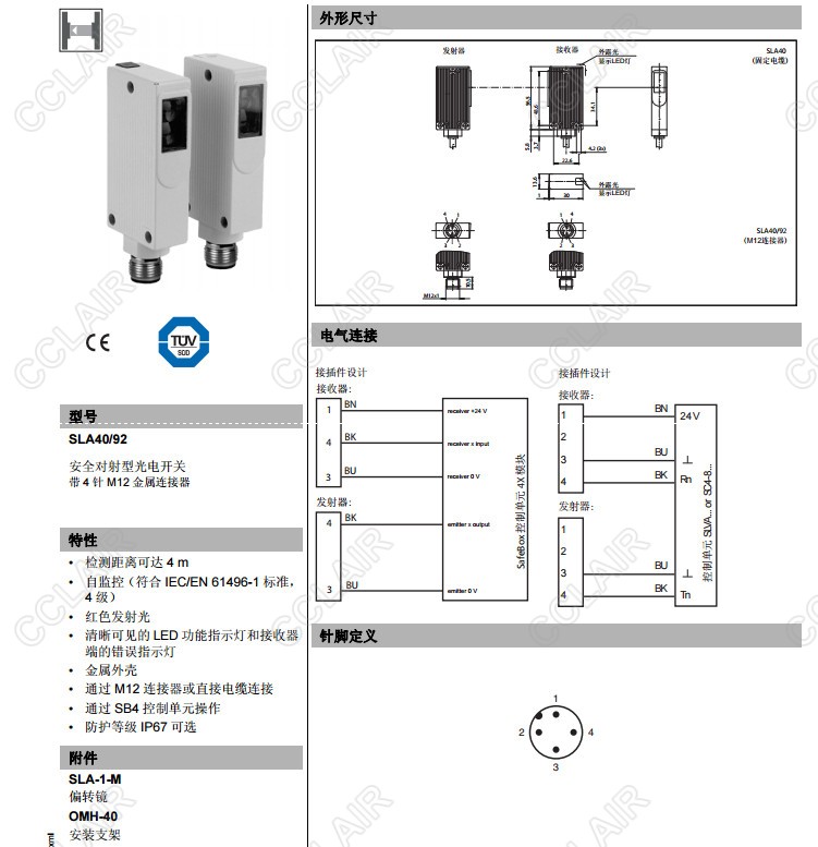 SLA40/92,對射型安全光電傳感器