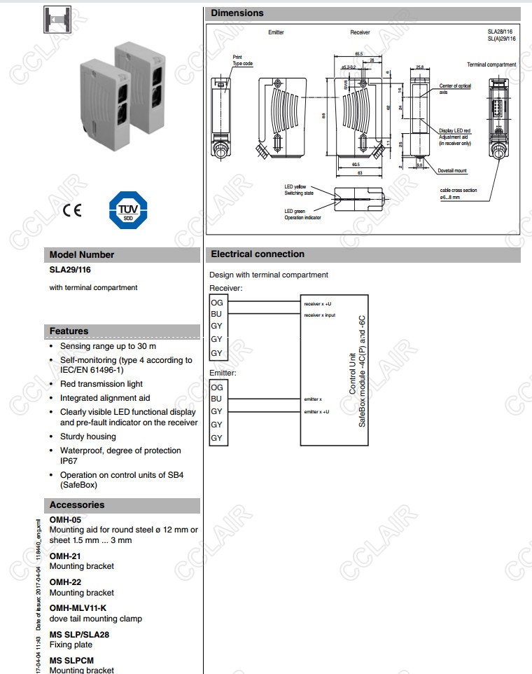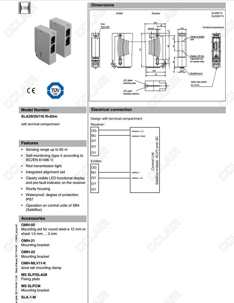 SLA29/116,SLA29/35/116 R=65m,對射型安全光電傳感器