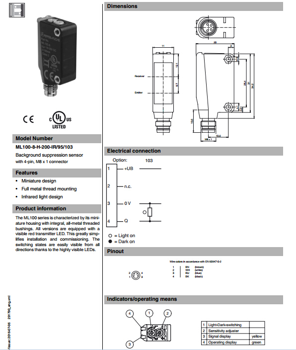 ML100-8-H-200-IR/95/103,漫反射型傳感器