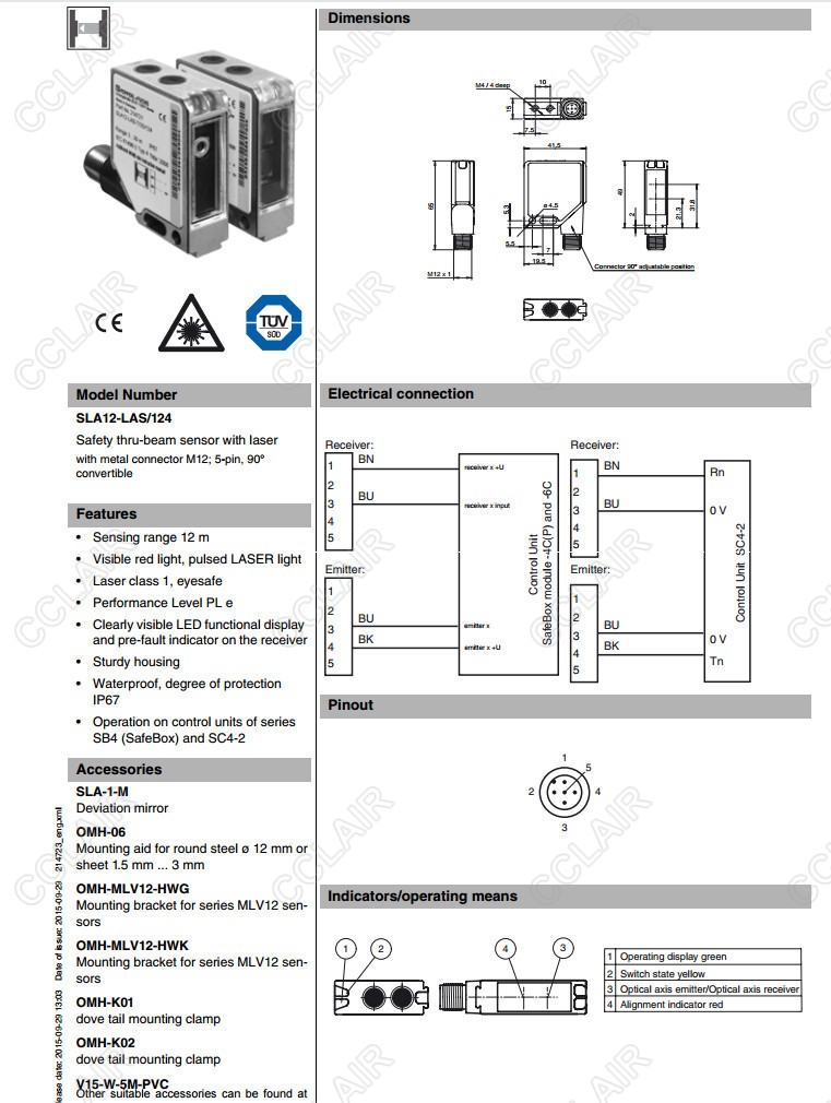 SLA12-LAS/35/124,SLA12-LAS/124,對射型安全光電傳感器