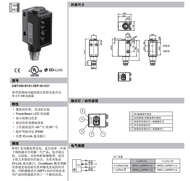 OBT350-R101-2EP-IO-V31-1T,漫反射型傳感器