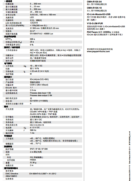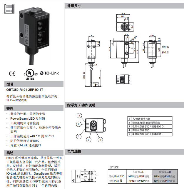 OBT350-R101-2EP-IO-1T,漫反射型傳感器