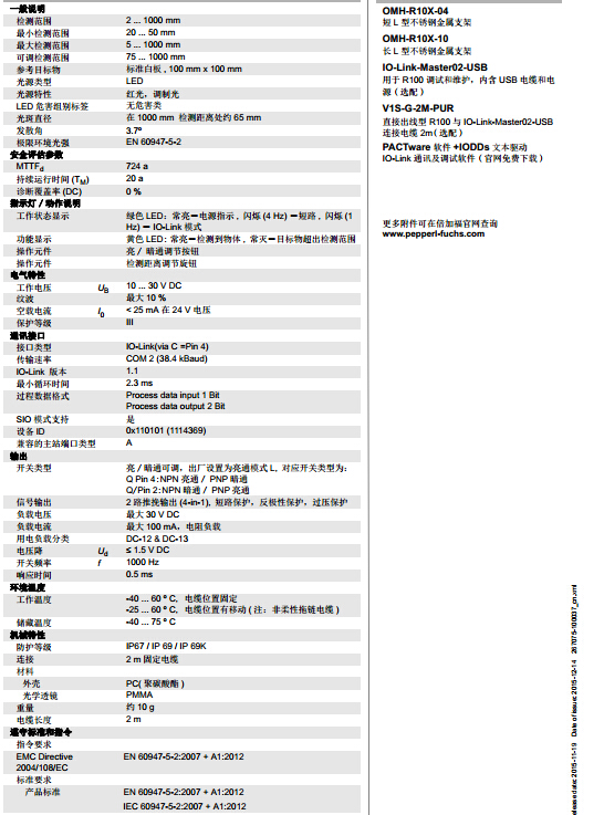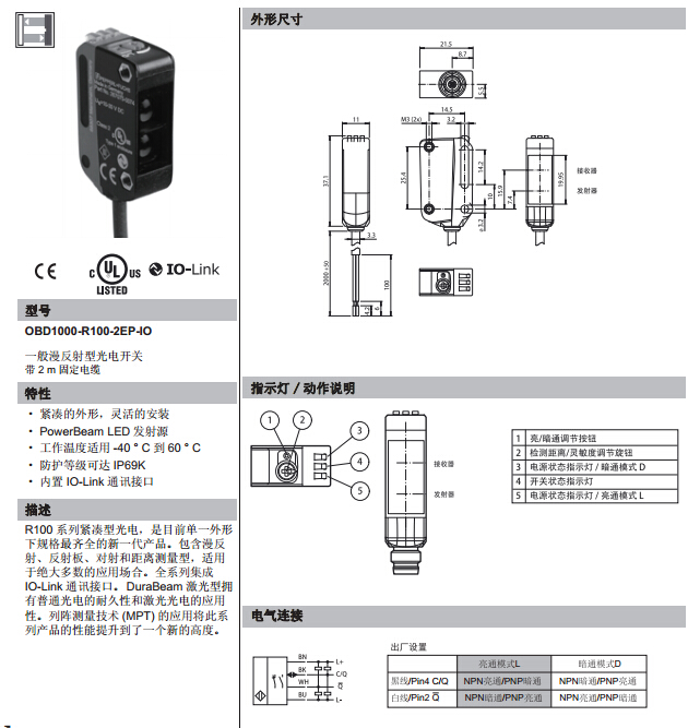 OBD1000-R100-2EP-IO,漫反射型傳感器