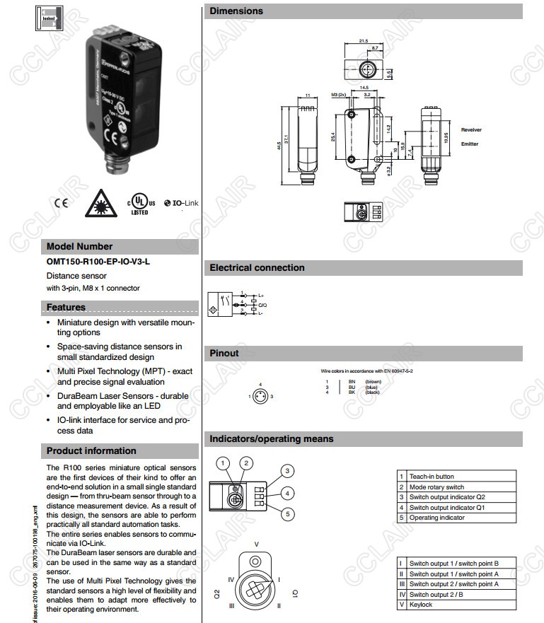 OMT150-R100-EP-IO-V3-L,距離傳感器