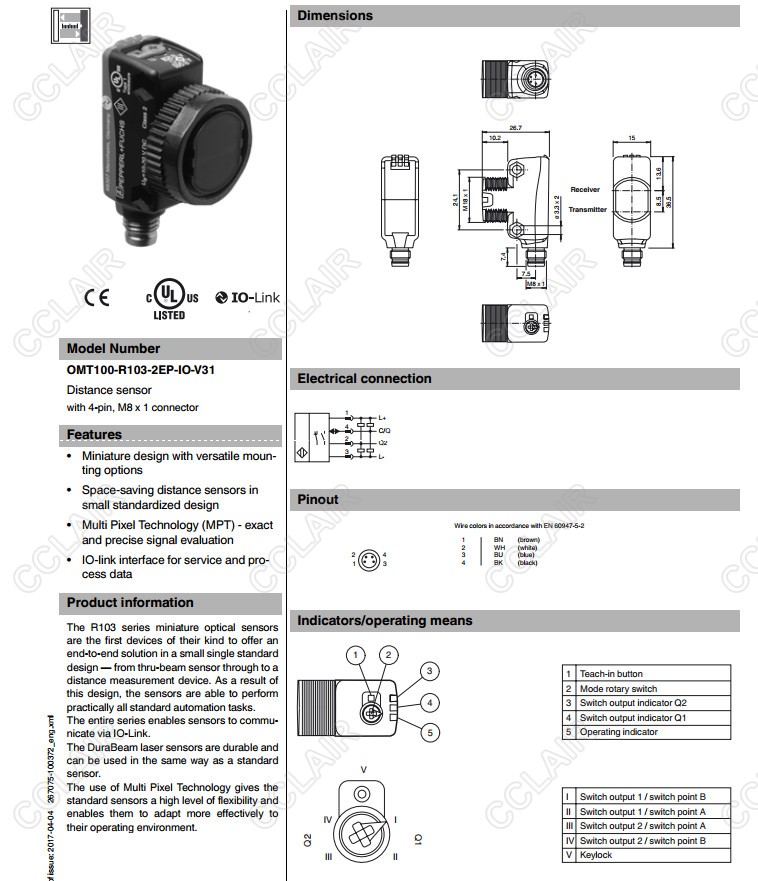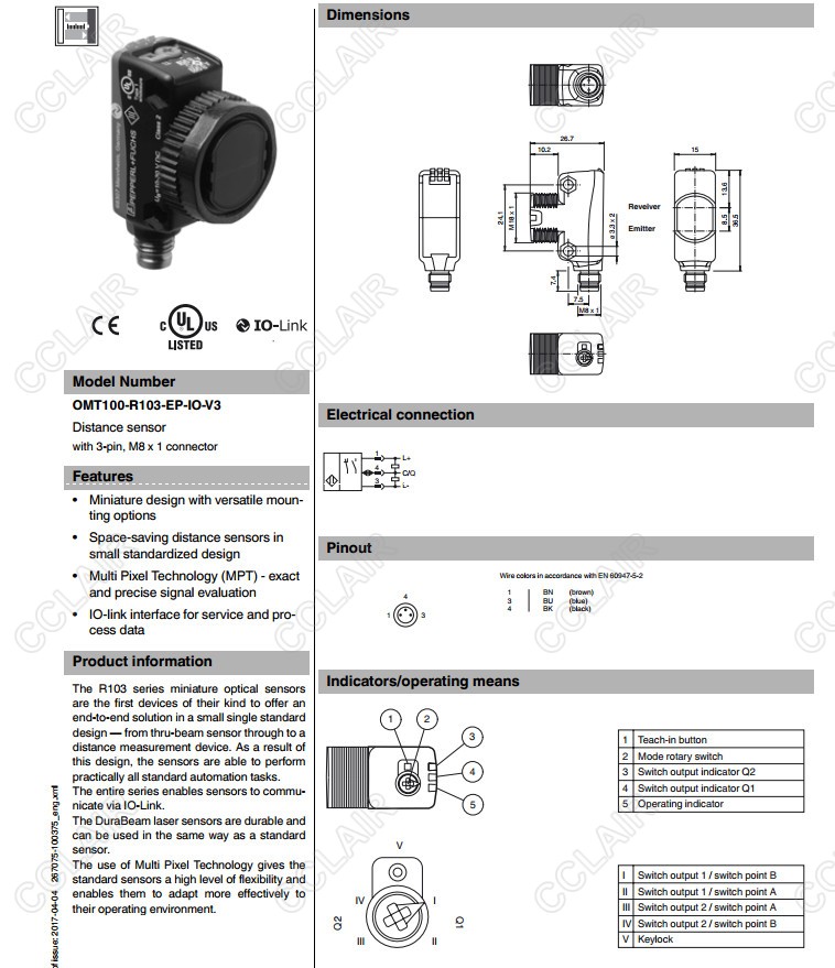 OMT100-R103-2EP-IO-V31,OMT100-R103-EP-IO-V3,測距傳感器