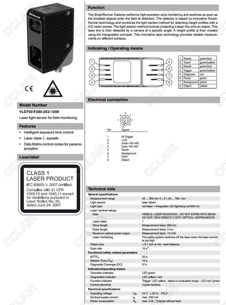 VLD700-F280-2E2-1000,VLM350-F280-2E2-1000,激光傳感器