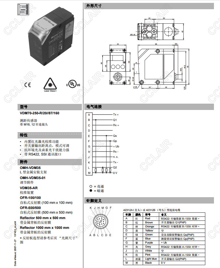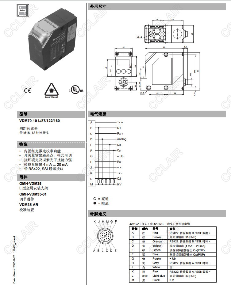 VDM70-10-L/87/122/160,VDM70-250-R/20/87/160,測(cè)距傳感器