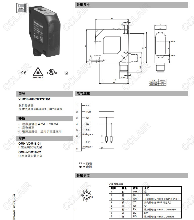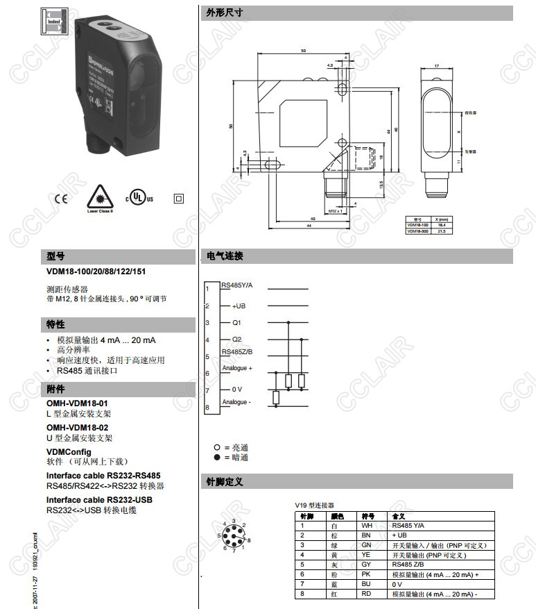 VDM18-100/20/122/151,VDM18-100/20/88/122/151,VDM18-300/20/122/151,測(cè)距傳感器