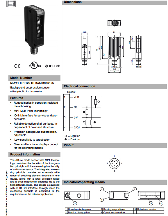 MLV41-8-H-120-RT-IO/65b/92/136,漫反射型傳感器