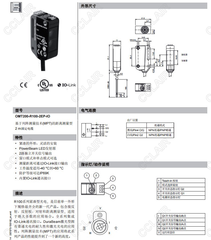 OMT150-R100-2EP-IO-L,OMT200-R100-2EP-IO,OMT50-R100-2EP-IO-L,距離傳感器