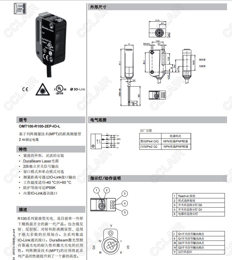OMT100-R100-2EP-IO,OMT100-R100-2EP-IO-L,距離傳感器