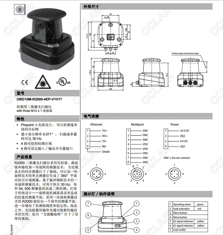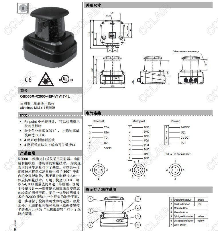 OBD10M-R2000-4EP-V1V17,OBD30M-R2000-4EP-V1V17-1L,激光掃描器