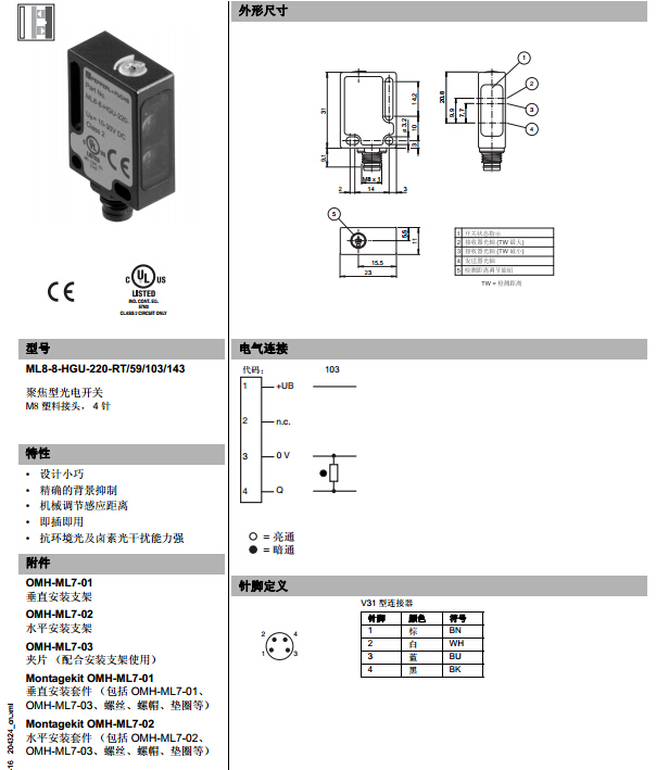 ML8-8-HGU-220-RT/59/103/143,漫反射型傳感器