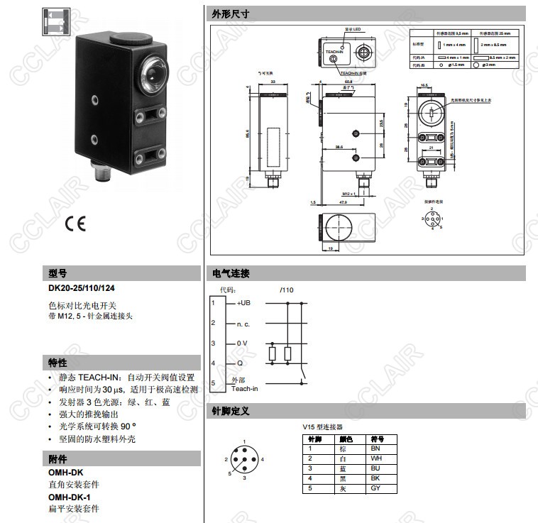 DK20-25/110/124,DK20-25/A/110/124,DK20-25/B/110/124,色標(biāo)對比度傳感器