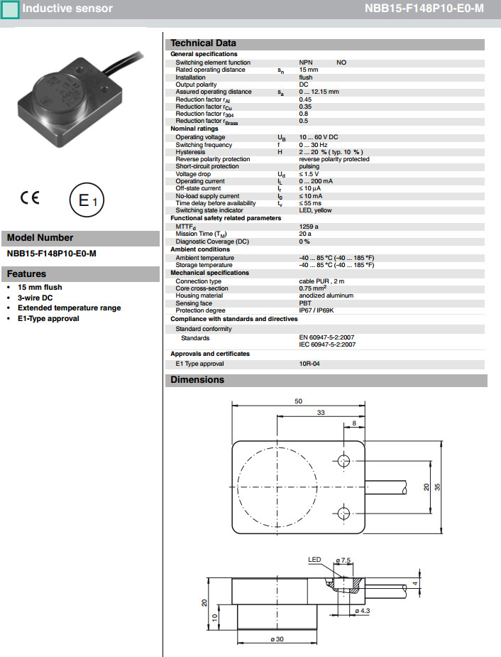 NBB15-F148P10-E0-M,NBB15-F148P10-E0-M-150MM-3DT04