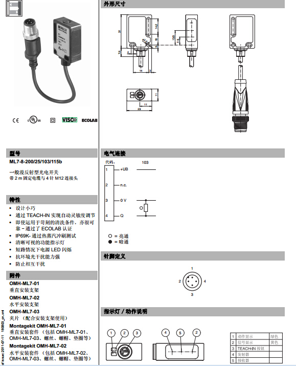 ML7-8-200/25/103/115b,漫反射型傳感器