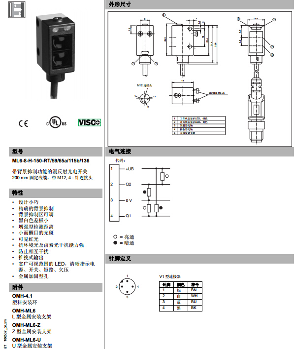 ML6-8-H-150-RT/59/65a/115b/136,漫反射型傳感器