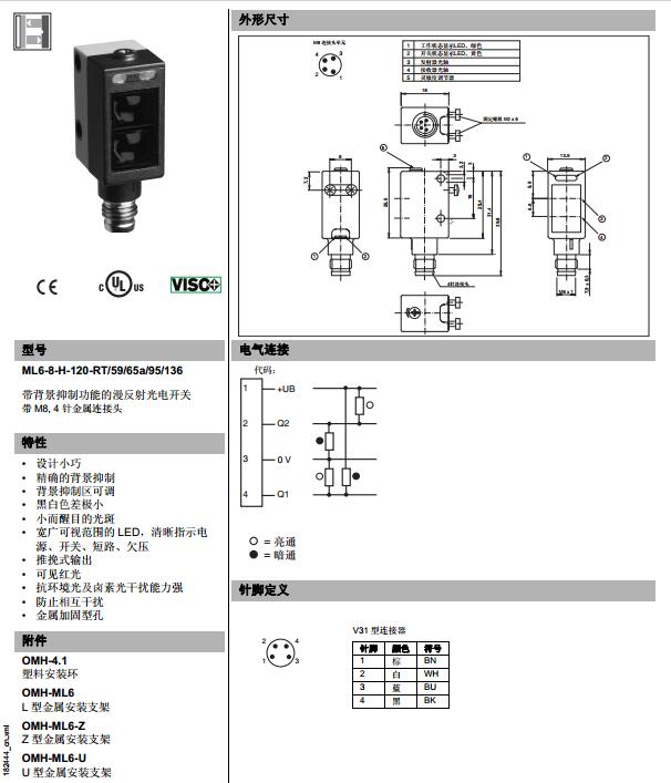 ML6-8-H-120-RT/59/65a/95/136,漫反射型傳感器