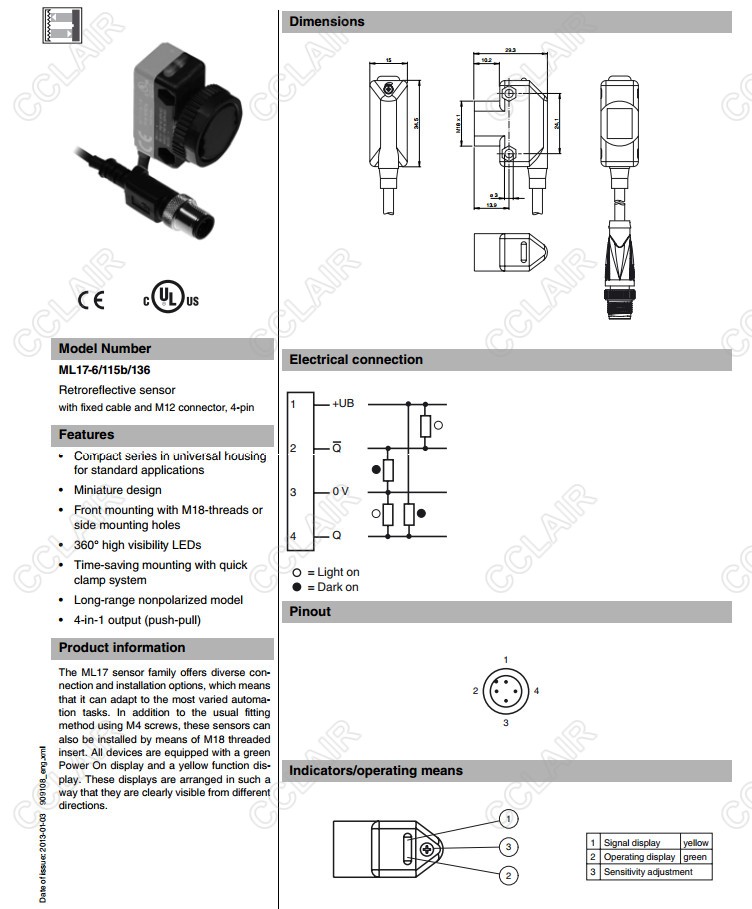 ML17-6/115b/136,反射板型傳感器