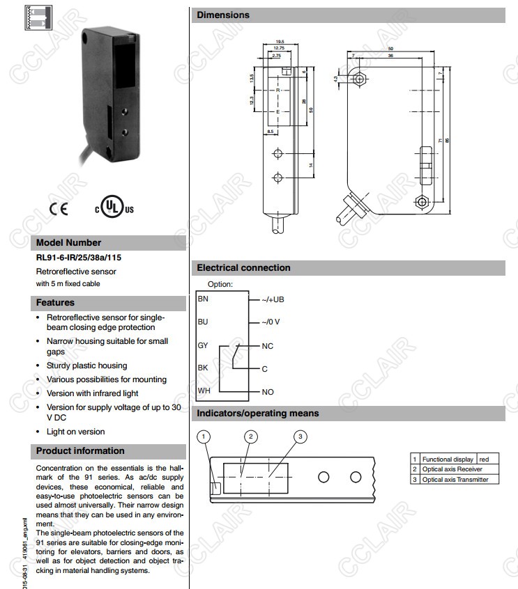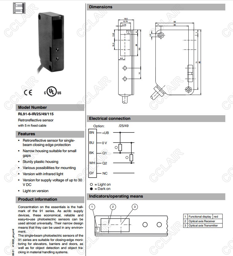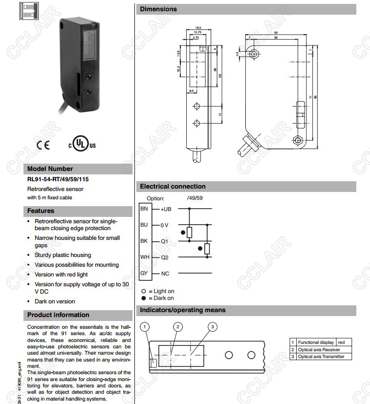 RL91-54-RT/49/59/115,RL91-6-IR/25/38a/115,RL91-6-IR/25/49/115,反射板型傳感器